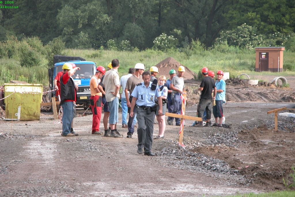 Podle slov zasahujiho policisty spadl delnik z vysky 2patra. Po prijezdu zasahovych jednotek komunikoval, byl privedomi. S podezrenim na vnitrni zraneni byl prevezen do nemocnice. Neni v primem ohrozeni zivota. Cela udalost je kvalifikovana jako nehoda, podle predbezneho setreni nedoslo k poruseni pracovnich predpisu. Fotky vecer.