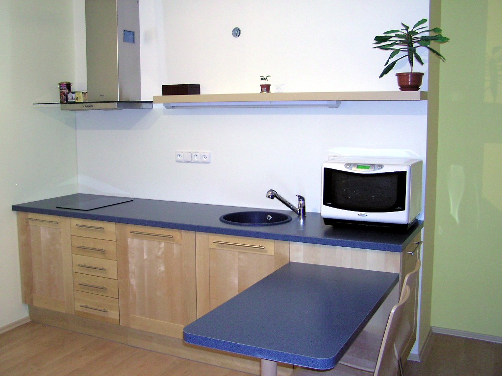 No tak jednak neni jeste komplet - chybi tam kavovar, nekam musim povesit uterku atd. a jednak je uplne vsechno schovano ve skrinkach