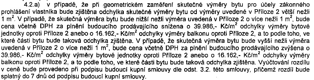 No já mám ve Smlouvě o budoucí kupní smlouvě odstavec kde se píše o odchylce 1m2 |