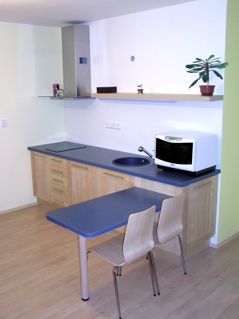 No tak jednak neni jeste komplet - chybi tam kavovar, nekam musim povesit uterku atd. a jednak je uplne vsechno schovano ve skrinkach