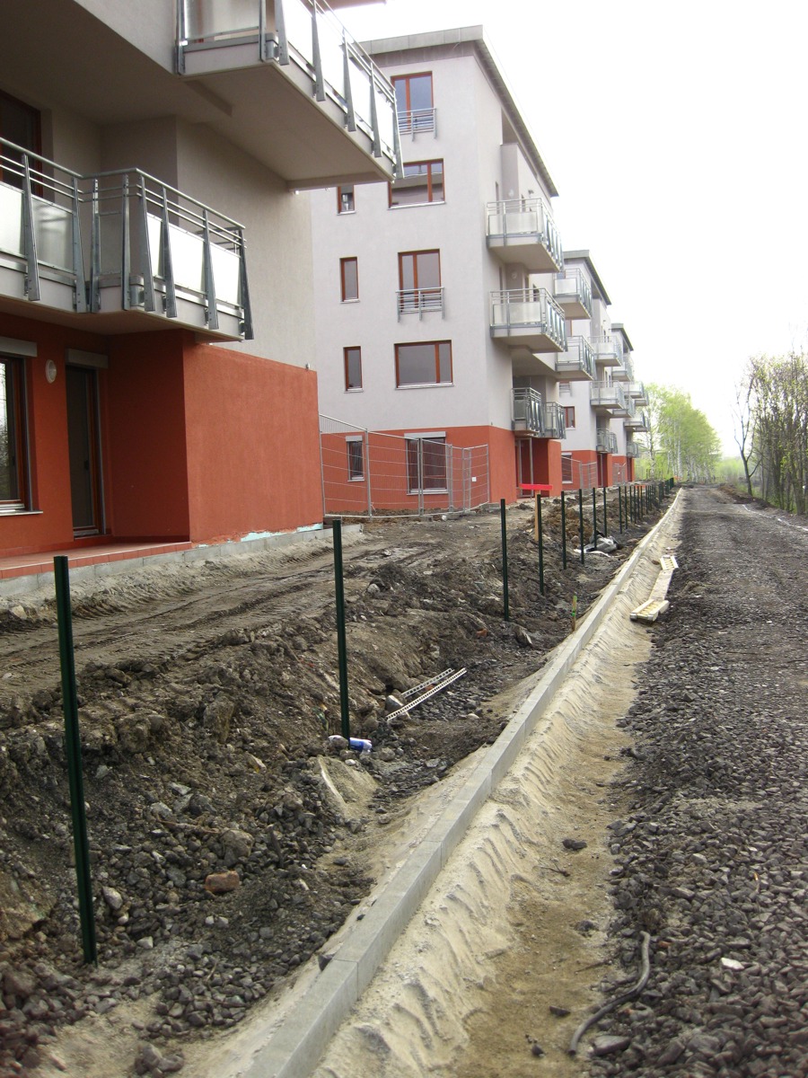 Zdar, tak mě na staveništi čekalo nemilé překvapení .. tedy spíš šok. Tedy jen pro majitele zahrádek směrem k Rokytce. Z naprosto nepochopitelných důvodů se zahrádky prudce svažují směrem k cyklostezce a až pod svahem je plot. Čili pokud budete stát na své zahradě tak nejen že plot bude cca ke kolenům ale také budeme ochuzeni o zhruba 0,5 - 1 m pozemku !!!!! Bude to pouze pletivo bez podezdívky. Mluvili jsme s chlapíky co zrovna plot dělali a byli z toho taky dost vedle a nechápali o co ( prý moc "skvělému") projektantovi jde ... Tuhle blbost teda asi fakt nepochopím a nechopopím že v celém projektu není nikdo kdo by tuhle hovadinu pánovi rozmluvil. No takže je třeba se asi připravit na dozdění a dosypání zeminy, tedy alespoň já se takhle okrást o plochu zahrady nenechám .. Možná těm co mají velikou zahradu to tak vadit nebude ale malozahrádkáři berou každý metr :-D