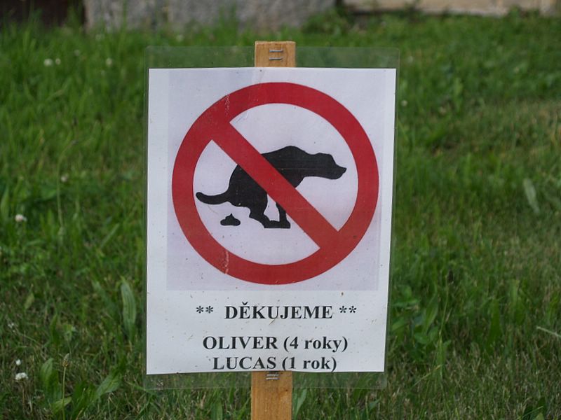 Nicmene zrovna ted to asi neni aktualni, protoze travniky rostou a ledacos se v nich ztrati = neni videt, coz pro nektere lidi znamena, ze problem uz neexistuje a brali by to jako zbytecne pruzeni. Nic to neprinese (krome potencialnich konfliktu). Az bude treba, vim kde tu cedulku hledat
