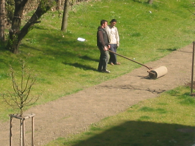 na jejich obranu musim rict, cely ten pruh hliny poctive uhrabali, zaseli travu a ted to valcuji