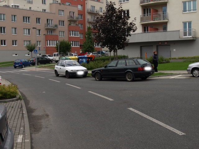 Včera jsem vyjížděl z garáží, zatáčím doprava a podél celé jedné protější strany ulice parkují auta (přerušovaná žlutá Mattioliho) a z obou stran jela auta, první auto jedoucí zleva zatáčelo také do garáže = totální chaos, kde se nikdo nemůže vyhnout a zablokovaná ulice... |